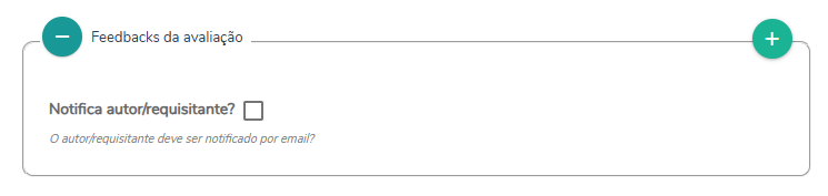 O responsável pode ainda encaminhar uma notificação/feedback para o respondente, utilizando o campo Feedback da avaliação.