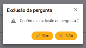 E caso queira excluir a pergunta cadastrada, apenas clique no botão "lixeira" e confirme a exclusão.