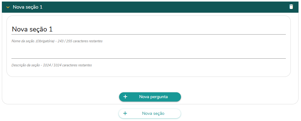 Informe o nome e a descrição da seção criada. O usuário pode criar quantas seções quiser e posteriormente reordena-las.