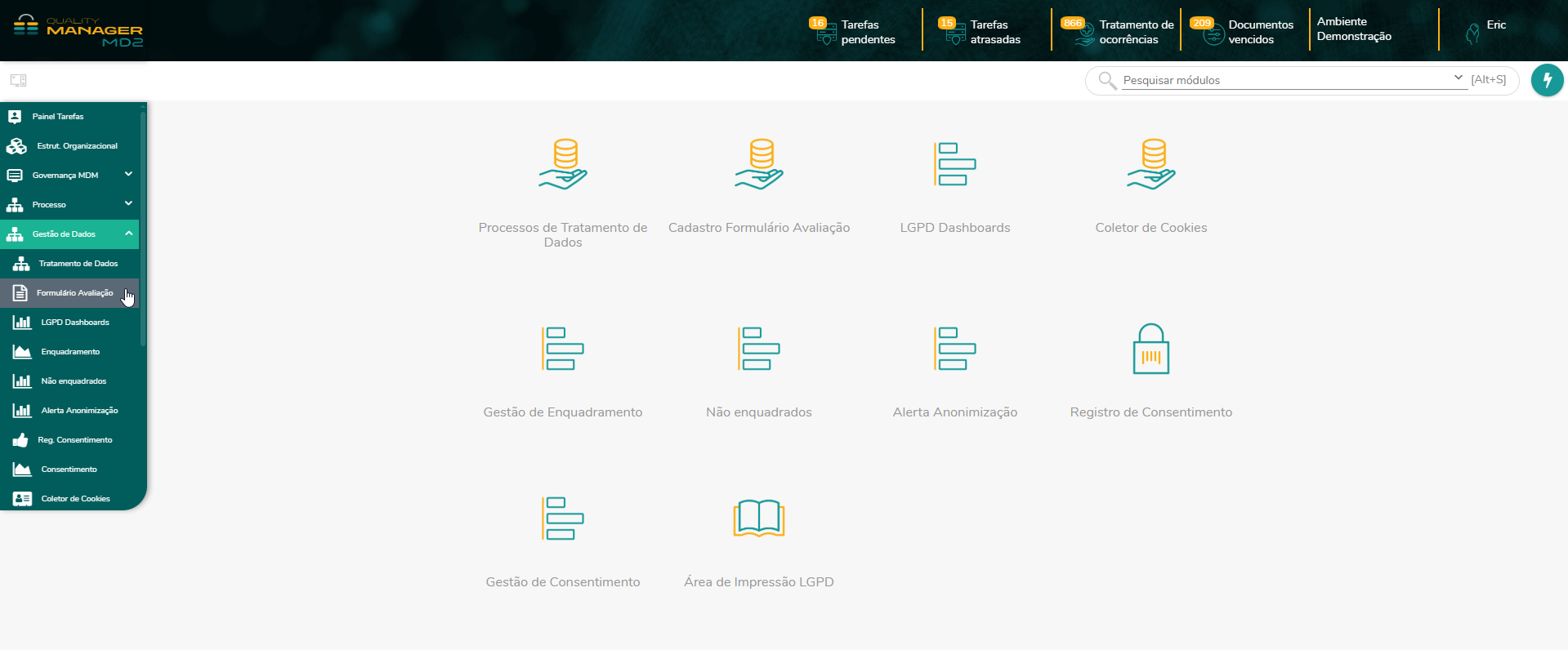 - Vinculação das avaliações a processos de tratamento de dados.