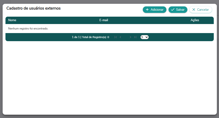 Na sequência, será exibido um modal para cadastro do usuário externo. Clique em Adicionar.