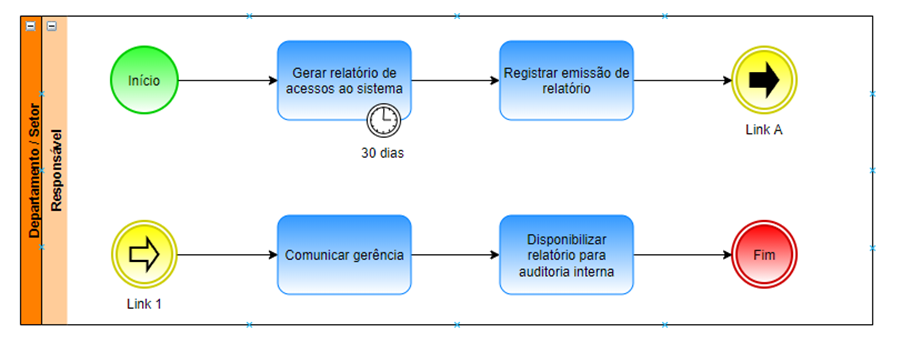 3.1.8. Apresentamos a utilização do envio e recebimento de Link e a tarefa que representa uma atividade que possui uma periodicidade de acontecimentos na Figura 11. A geração dos relatórios de acesso acontece mensalmente para a auditoria interna que possui um link para a avaliar a existência de contas de usuários desligados ativos.