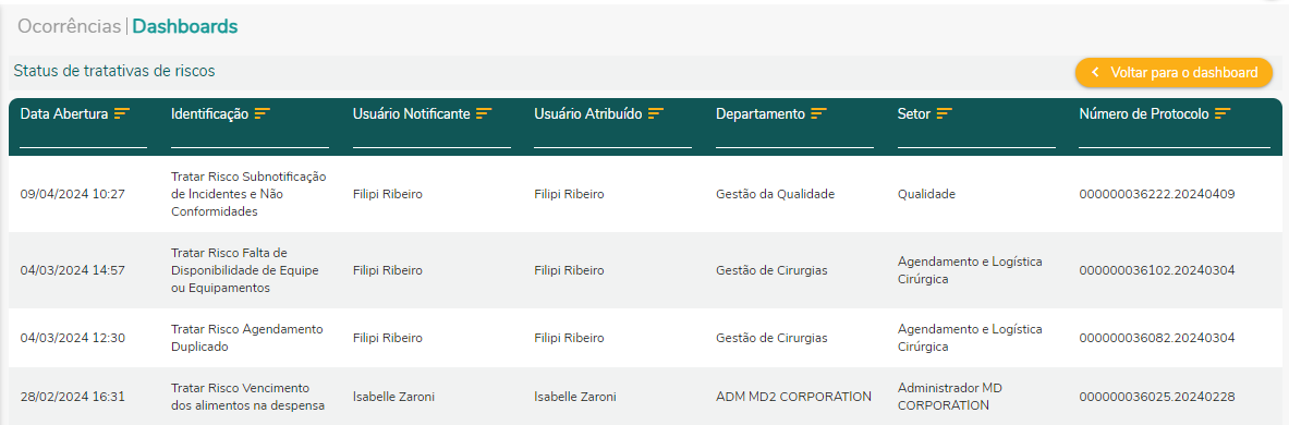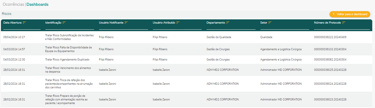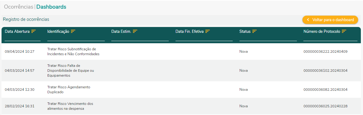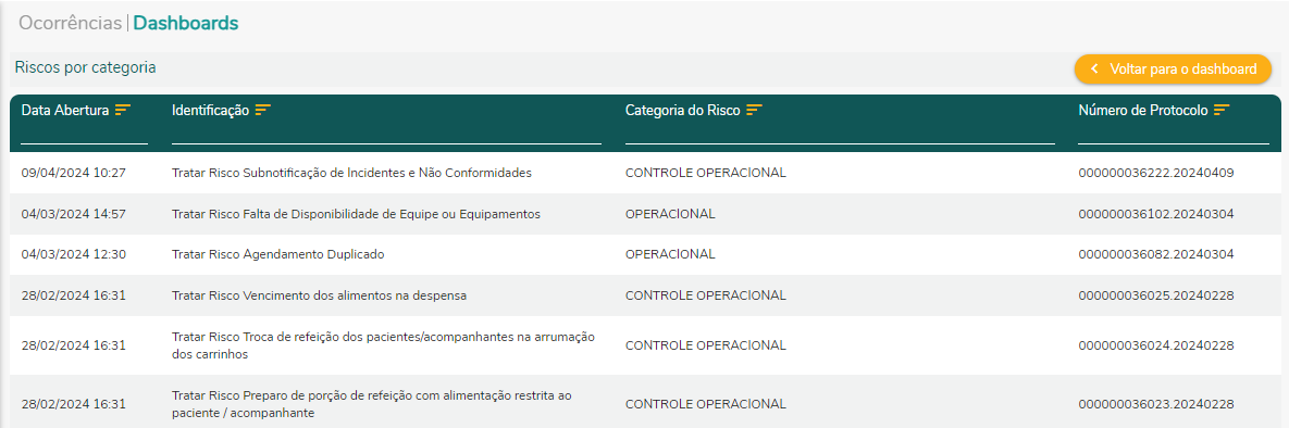 Numeração que indica, em quantidade, o total de ocorrências de riscos existentes durante o período selecionado no campo de filtros.
