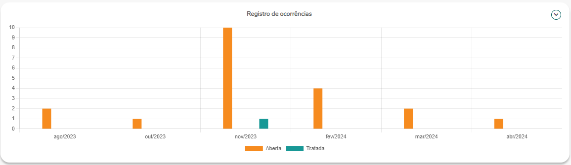O usuário poderá visualizar as ocorrências de acordo com sua necessidade, em forma de gráfico.