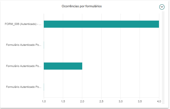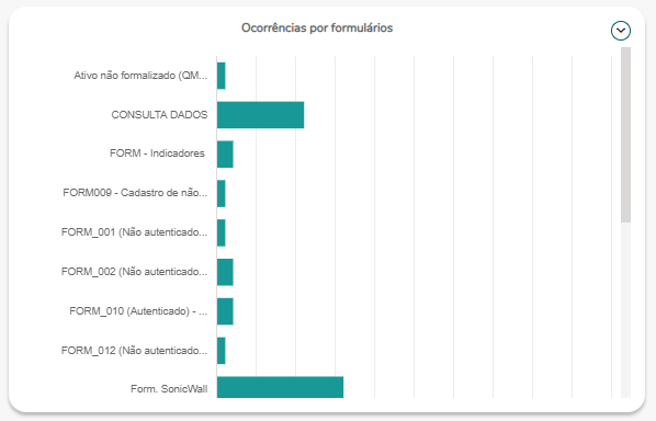 O gráfico indica, quantidade de ocorrências cadastradas por formulário.