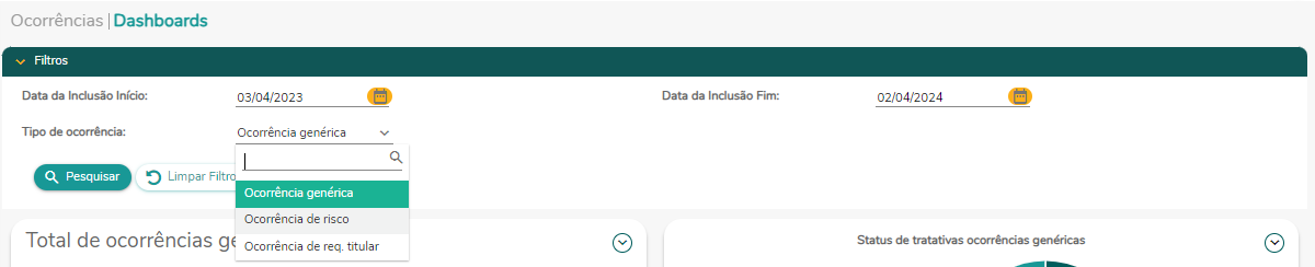 Como acessar: Ocorrências > Dashboard de Ocorrências