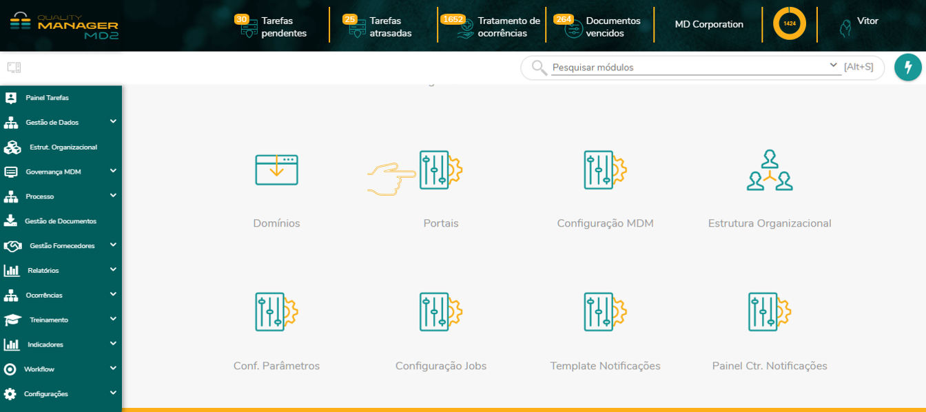 É necessário aguardar dois minutos para que as configurações sejam efetivadas e no MD2 Portal de Avaliação.