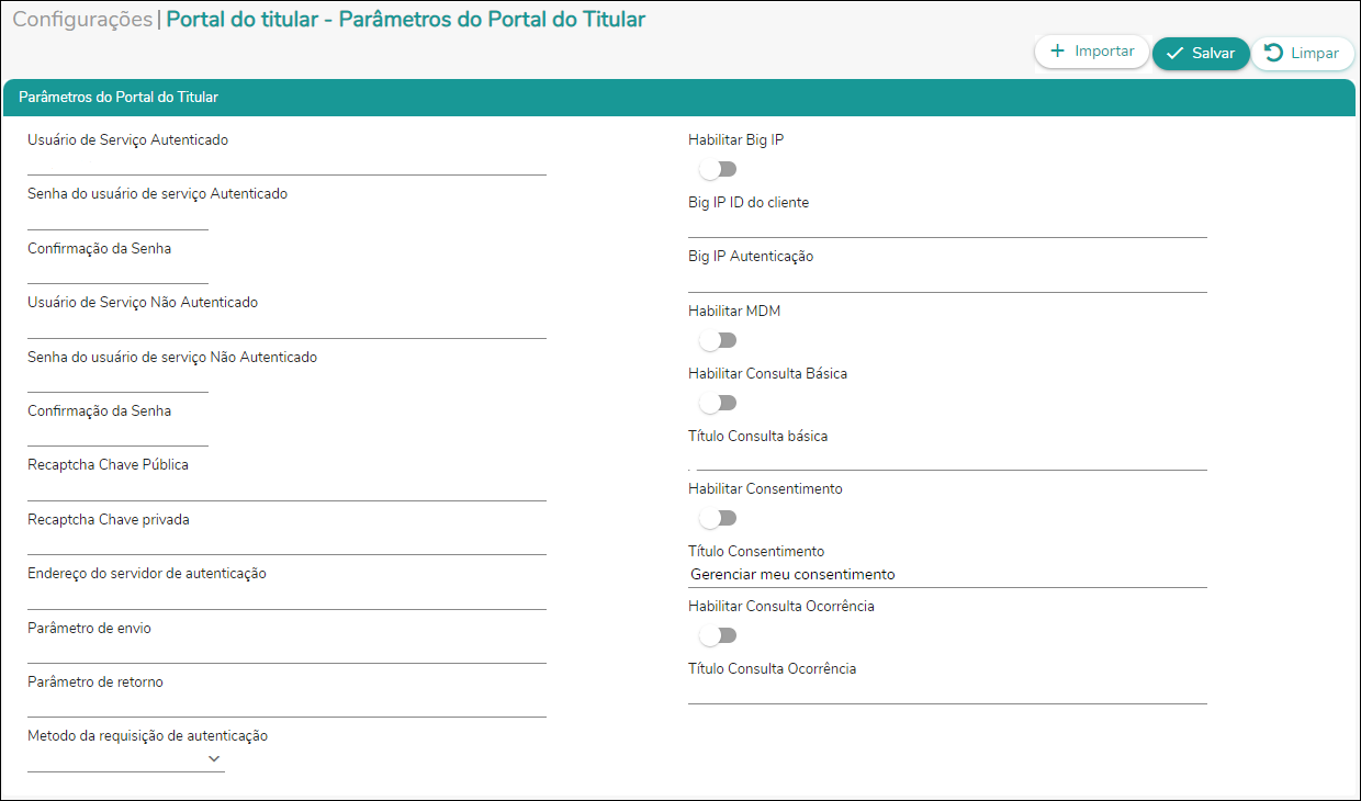 Acesse o Quality Manager > Configurações > Parâmetros do Portal do Titular.