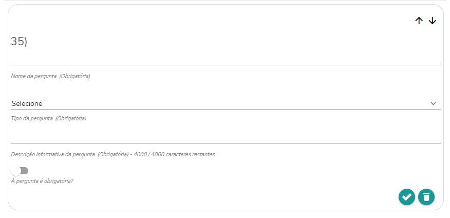 - Habilitar o componente InputSwitch caso a pergunta seja obrigatória.