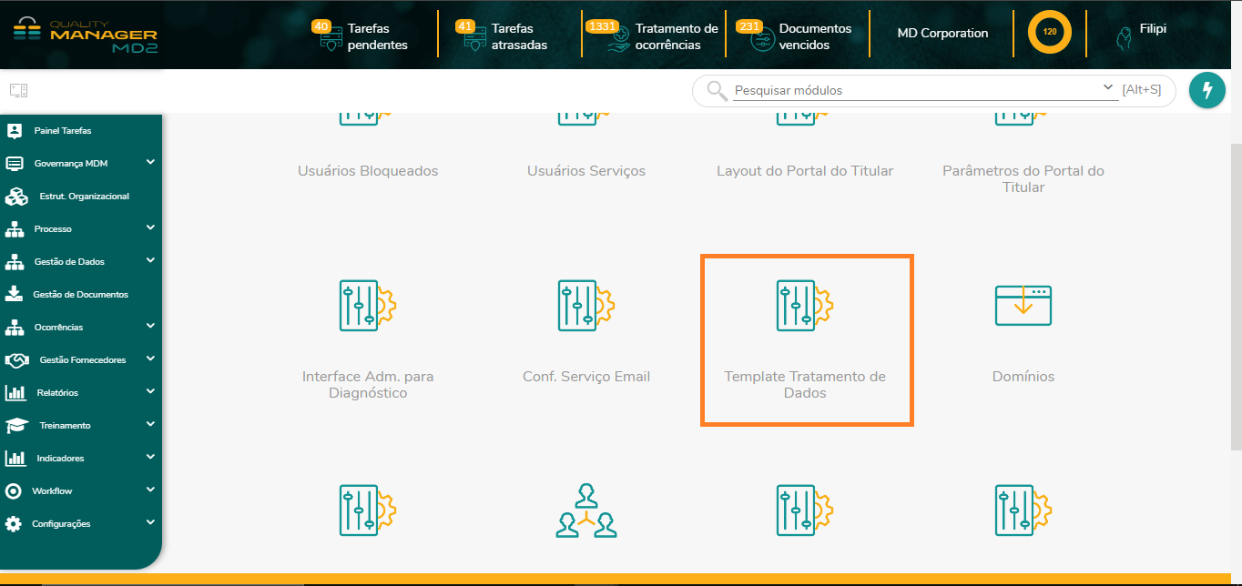 Este módulo permite ao usuário personalizar o template de tratamento de dados para atender às necessidades específicas da empresa.
