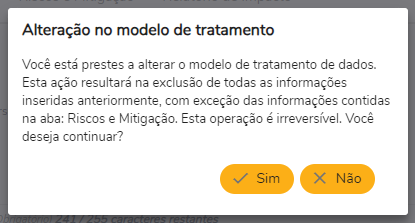 Ao tentar alterar o modelo de tratamento de dados, o sistema exibirá a seguinte mensagem de aviso: