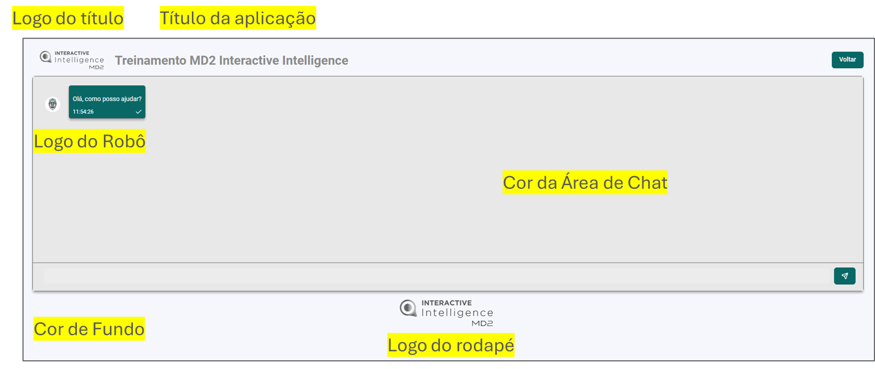 - Logo do robô: Campo destinado a apresentação do ícone de avatar do chat;