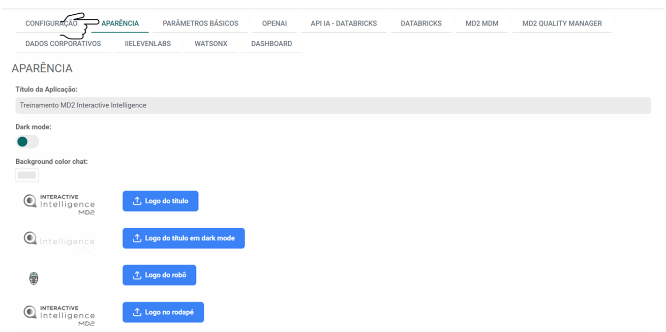 - Título da aplicação: Campo destinado para inserir o título da aplicação que irá aparecer na tela de chat;