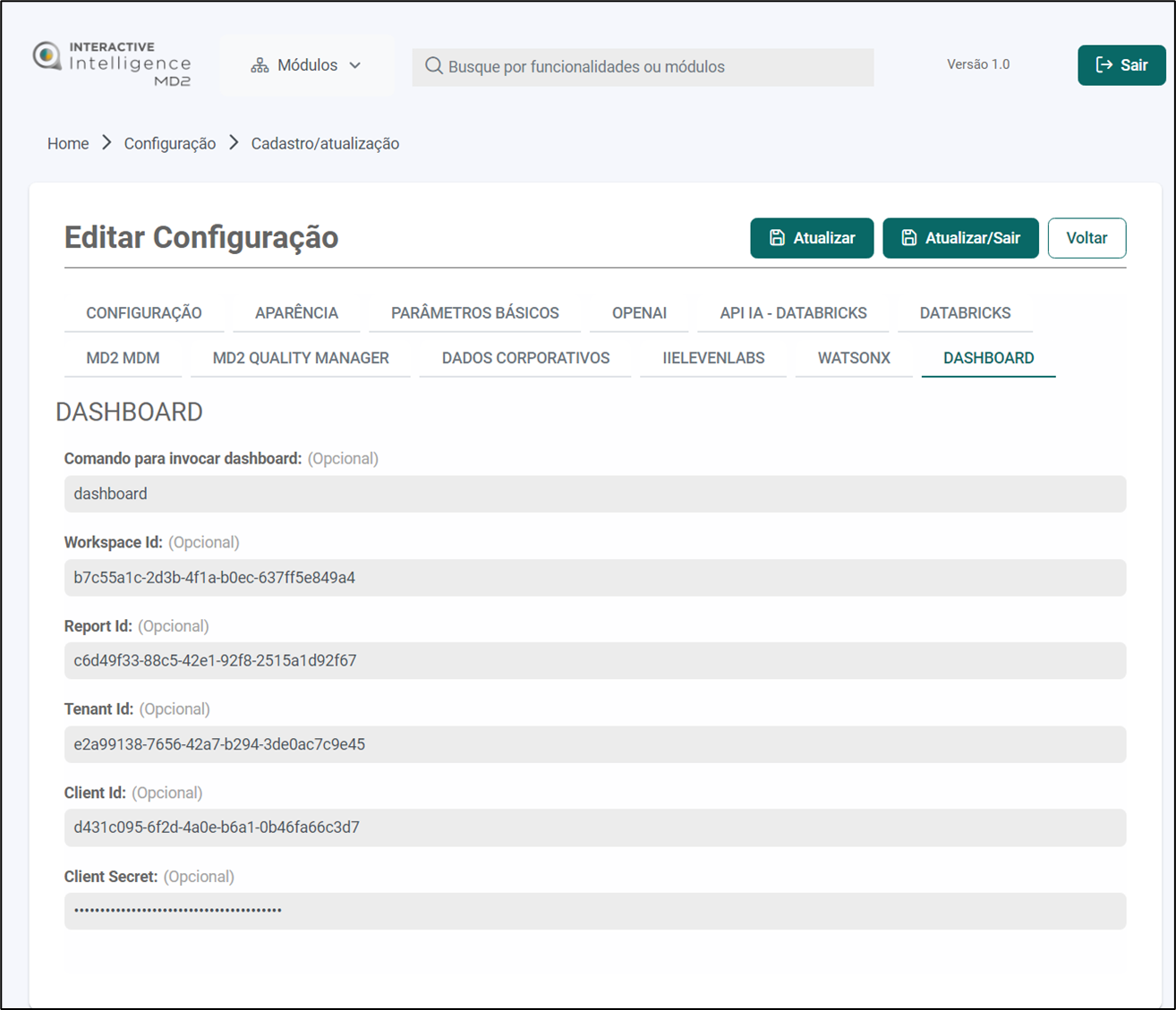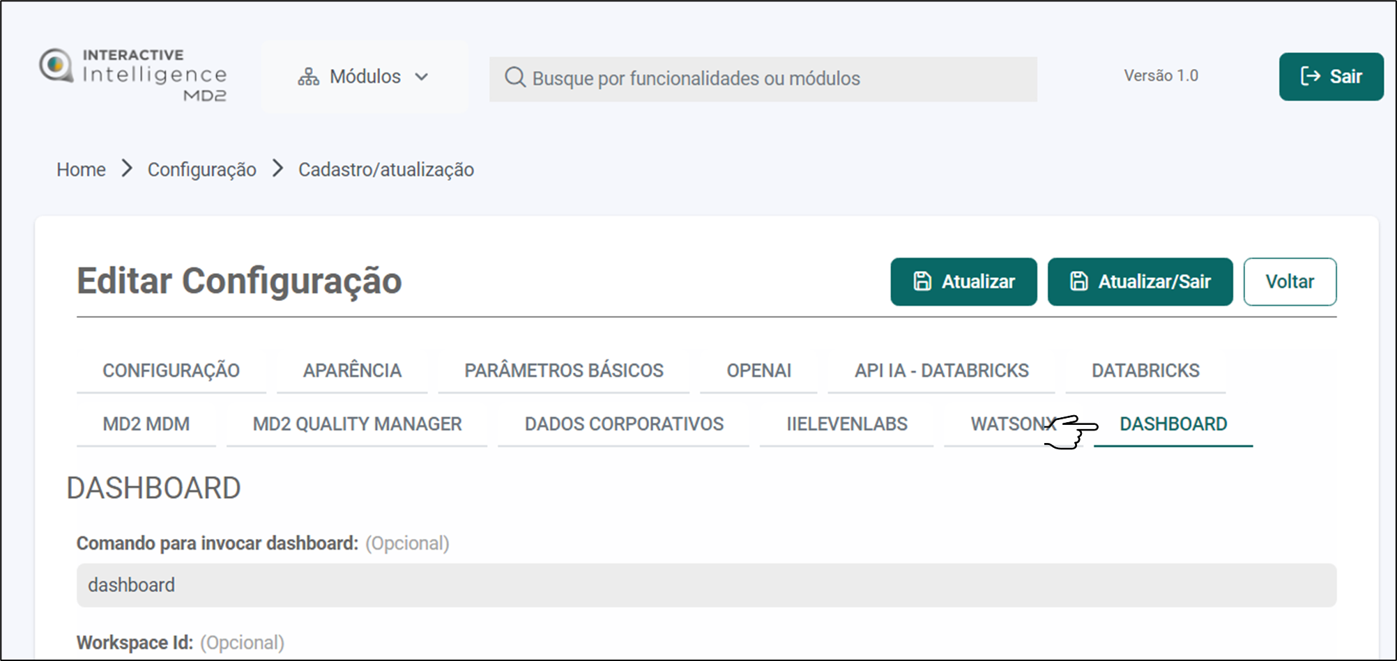 - Workspace id: Campo destinado à configuração do id do workspace;