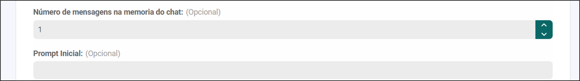 Para permitir o uso do histórico de perguntas ao formular novas consultas, acesse a aba de Parâmetros Básicos e ajuste a opção Número de mensagens na memória do chat, definindo a quantidade desejada de mensagens a serem mantidas no histórico.