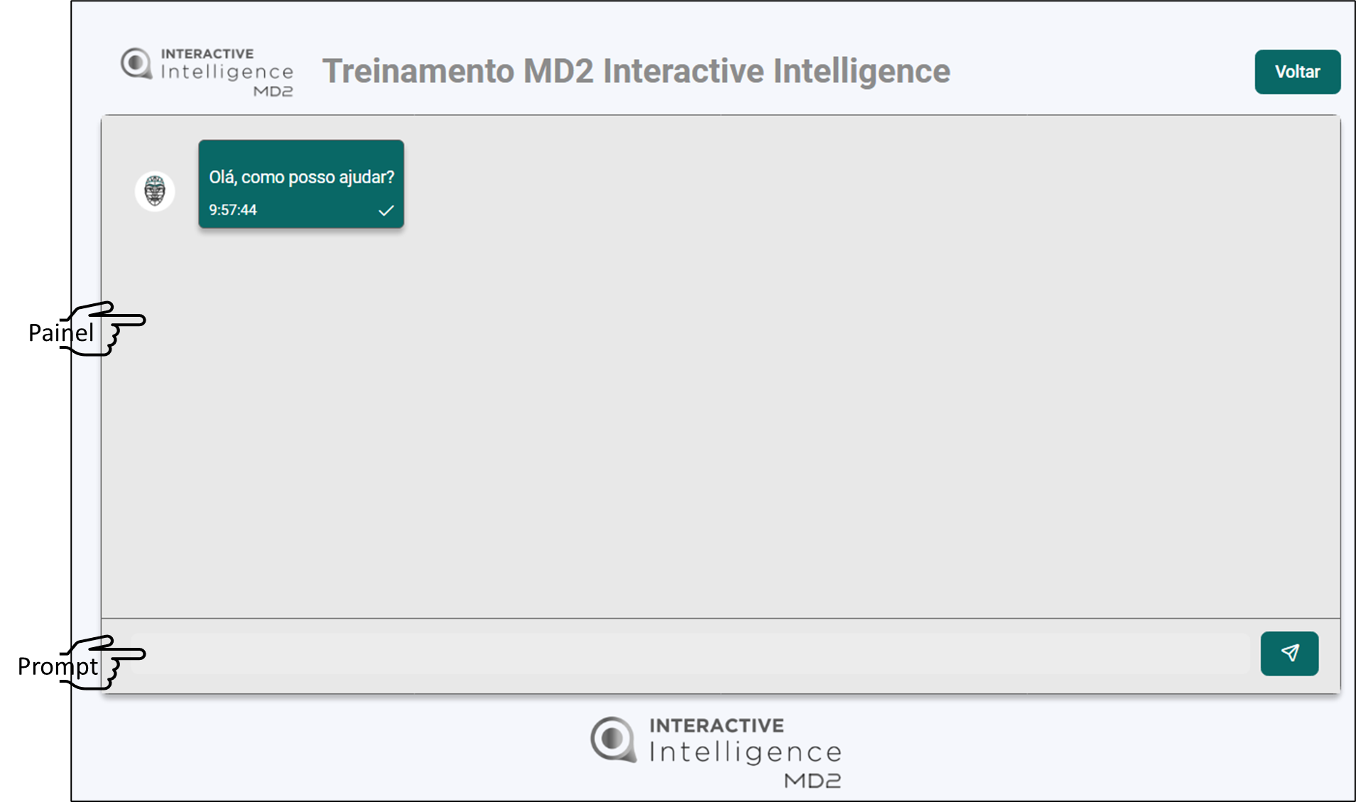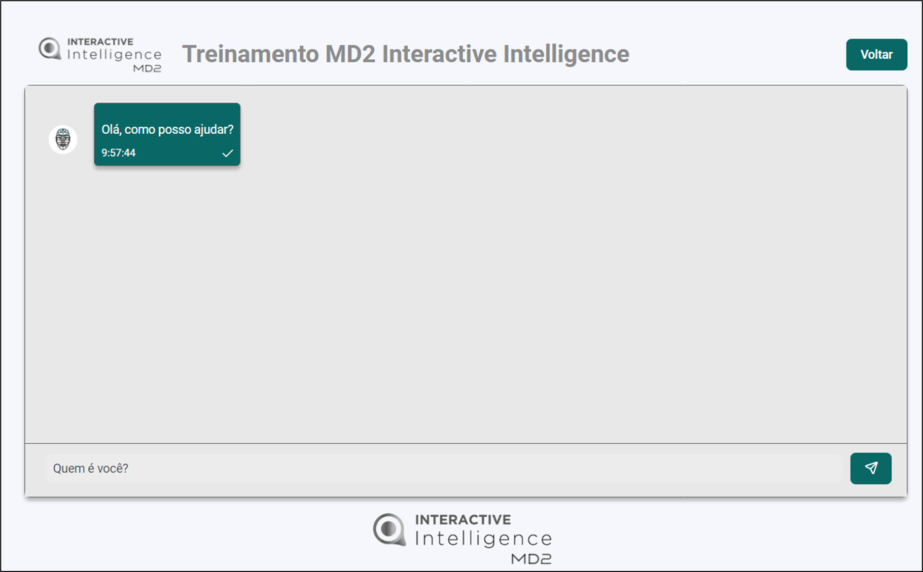 O MD2 Interactive Intelligence é um assistente que o usuário pode interagir com linguagem natural através de interações por meio de mensagens de texto ou voz. Ele é projetado para interagir automaticamente com os usuários, respondendo a perguntas, fornecendo informações, executando tarefas ou oferecendo suporte, sem a necessidade de intervenção humana.