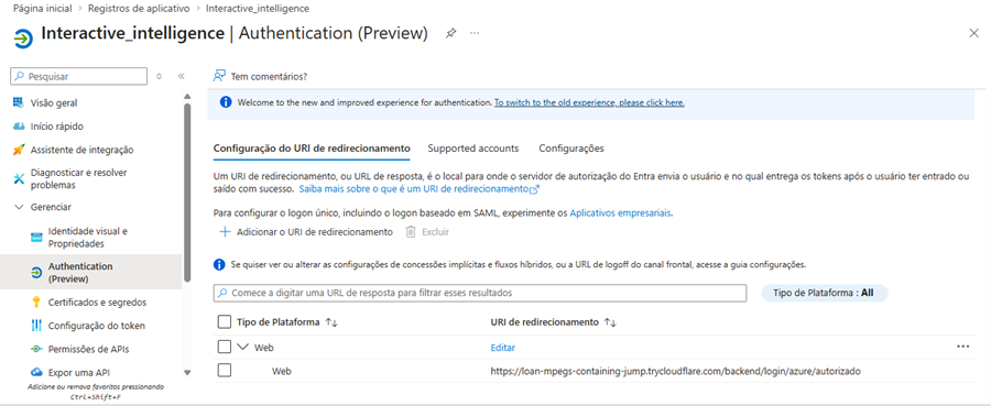 Formato: <url do aplicativo>/backend/login/azure/autorizado