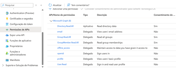 5 - Cadastre as seguintes permissões de acesso do Microsoft Graph
