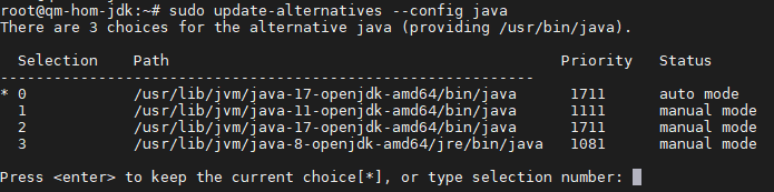 Caso o Java ainda se apresente na versão anterior, execute o comando abaixo e escolha a opção referente ao openJDK 17: