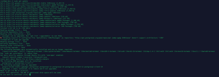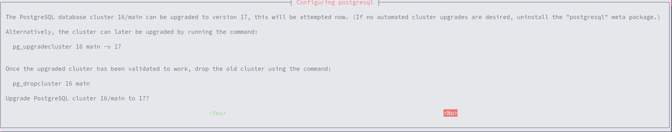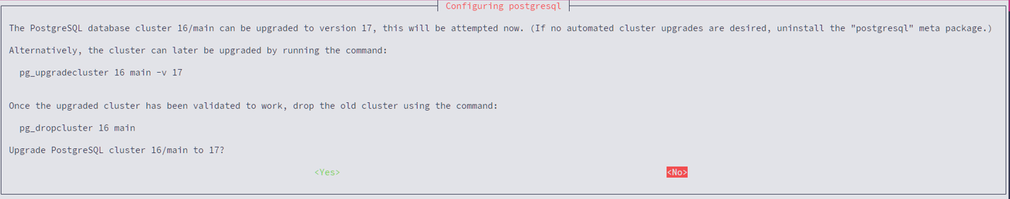 Após o upgrade para versão 24.04 deve realizar -se o upgrade para a versão 17 do banco de dados postgresql.