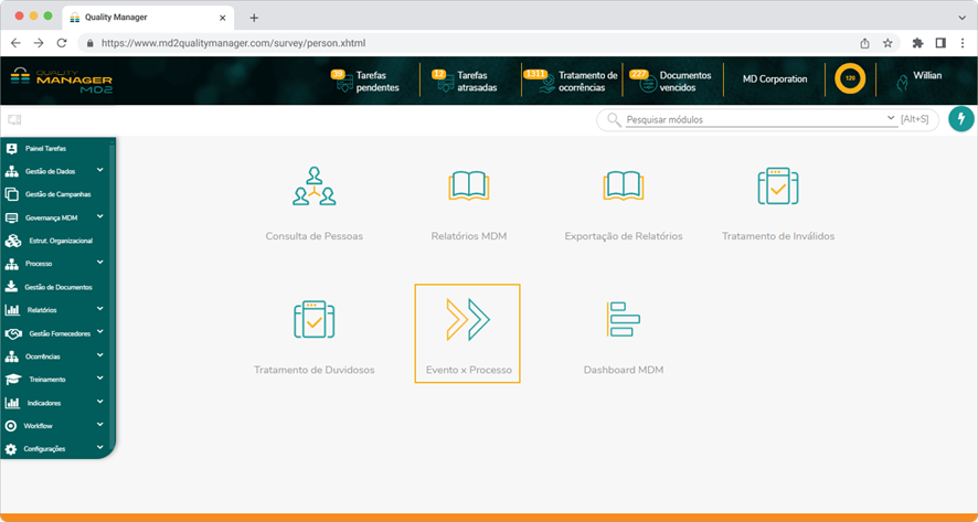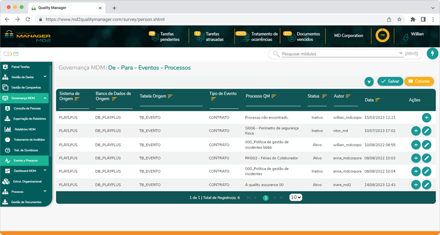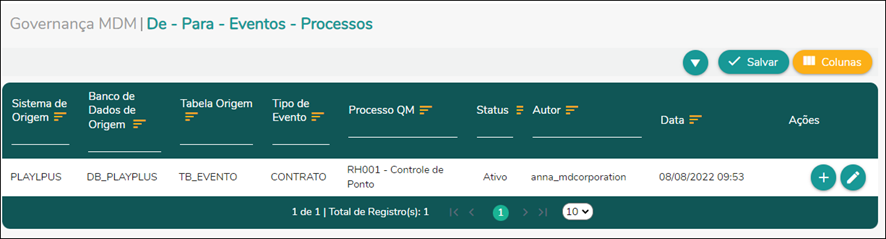 Como acessar: Governança MDM > Evento x Processo