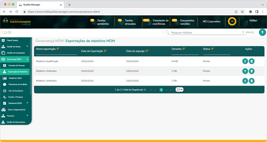 Descrição: responsável por exportar os relatórios referentes aos assuntos do Governança MDM