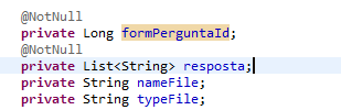 Estrutura do objeto resposta: campo formPerguntaId(representa o id da pergunta).